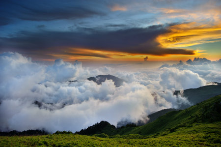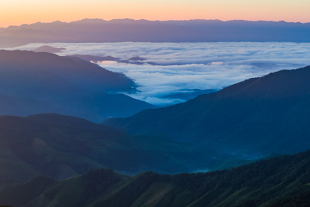 Sunset beautiful landscape of Sea of clouds over Hehuanshan at Taiwan