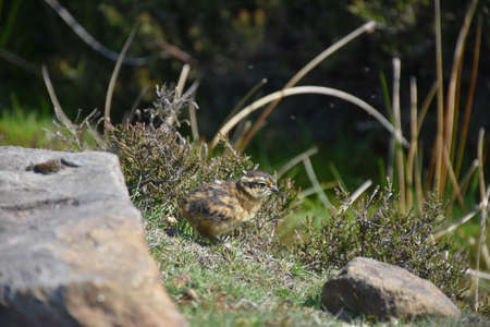 Bird Erckel's Francolin hiding in grass, Francolinus castaneicollisi , in Simien Mountains National Park, Ethiopia wildlife, Africa
