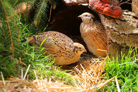 quail in the grass on the nature of poultry