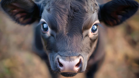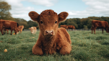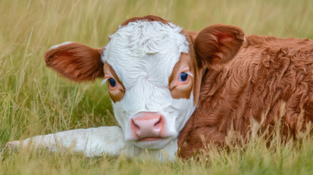 This charming image captures a young calf with soft, fluffy fur and bright, curious eyes, highlighting the beauty of farm life and nature's innocence.