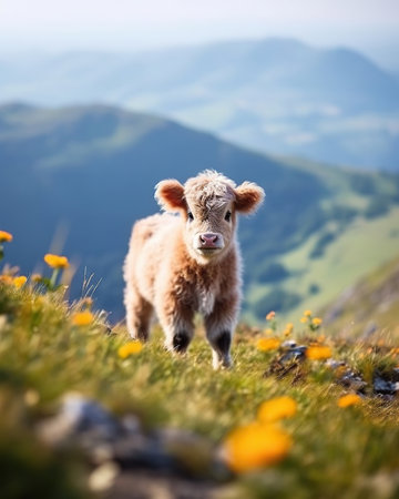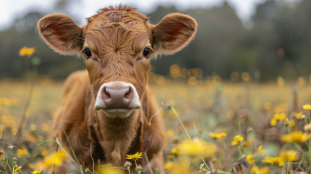 Innocence in the Meadow: A Cute Calf Amidst Nature's Canvas