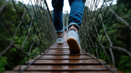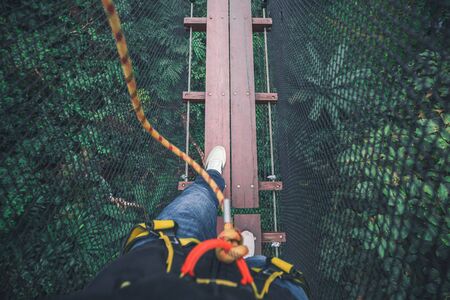 Selfie of black sneakers on suspension bridge lifestyle so cool