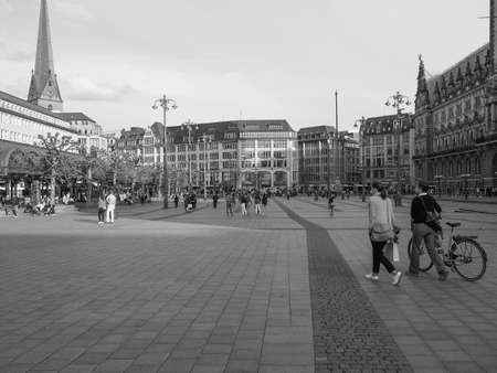 HAMBURG, GERMANY - CIRCA MAY 2017: Rathausmarkt (meaning City hall marketplace) in black and white