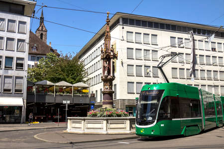 Basel, SWITZERLAND : City tram in Basel in a beautiful summer day, Switzerland