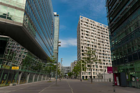 01 June 2019 Vienna, Austria - Donaucity, Building of headquarters STRABAG AG, real estate company in Tech Gate of Donaustadt. Sunny summer day