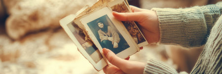 Warm tones highlight hands holding old photos, sparking nostalgia and a deep connection to cherished memories.