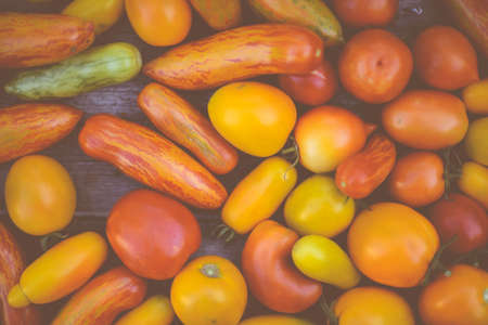 organic vegetables tomatoes, texture of tomatoes of different colors close-up