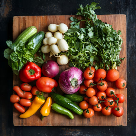 Fresh vegetables on wooden board