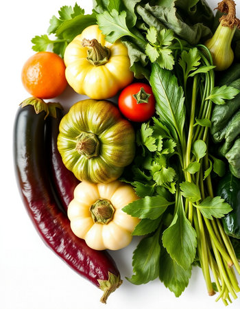 Fresh Vegetables and Herbs on White Background. Healthy Eating Concept.