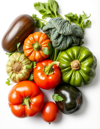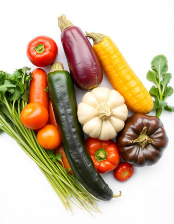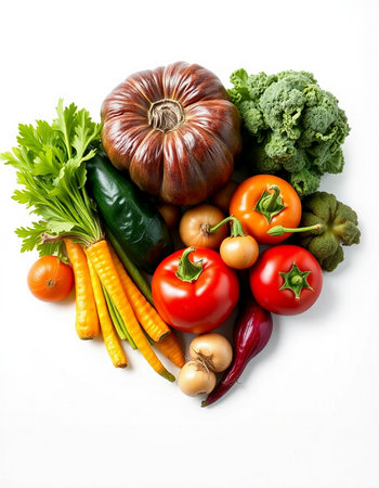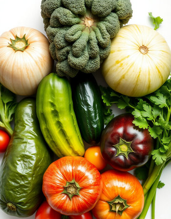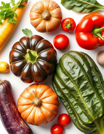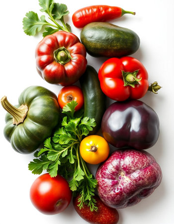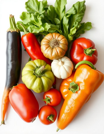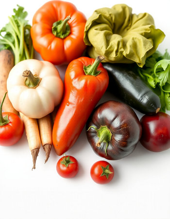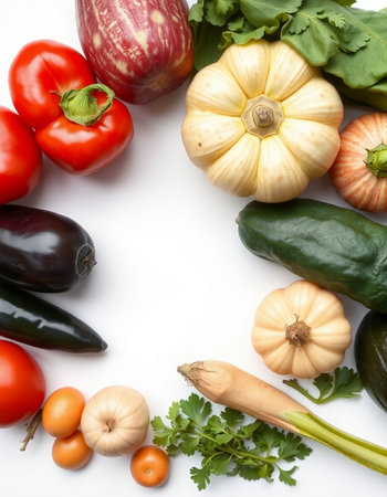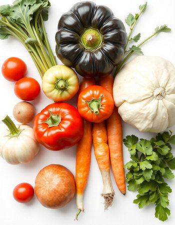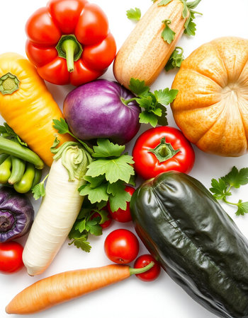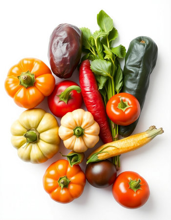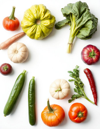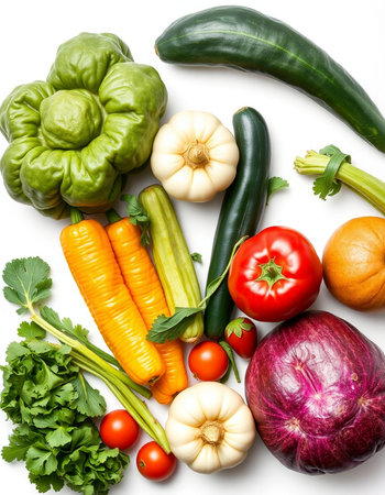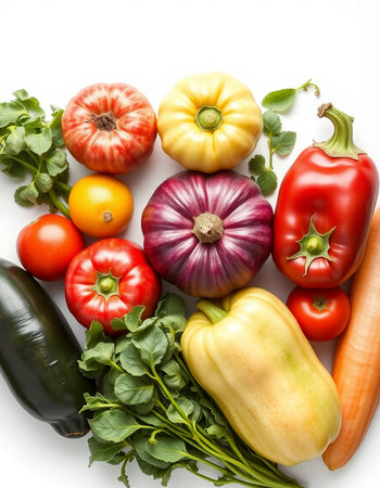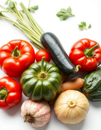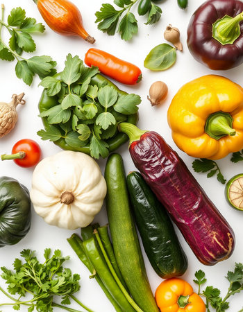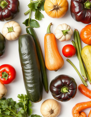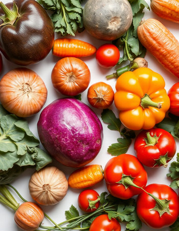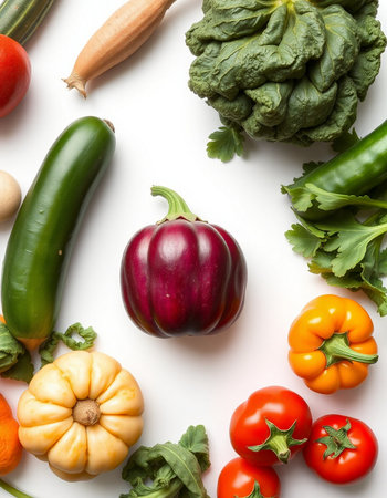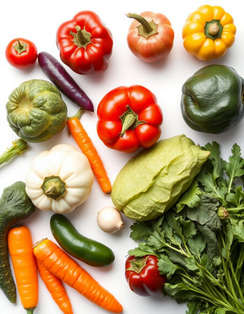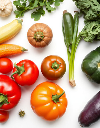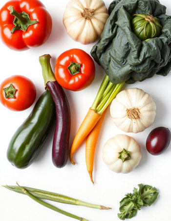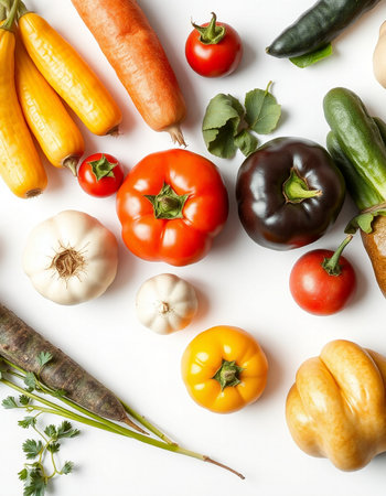 vegetables on a white background, top view, close-up