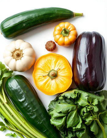 Composition with fresh vegetables on a white background. Balanced diet.