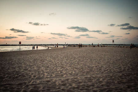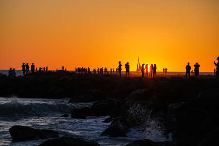 Tel Aviv Israel October 04, 2020 View of unidentified people without a face mask to protect themself having fun during the sunset in Tel Aviv beach despite lockdown and Coronavirus outbreak