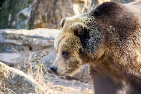 Large grizzly bear portrait out in the wild at sunny day