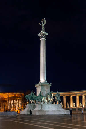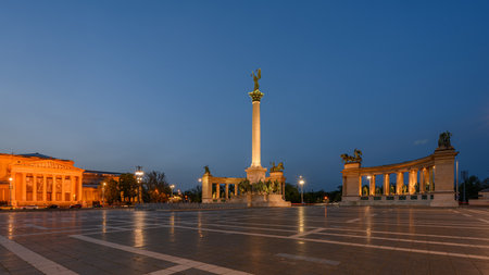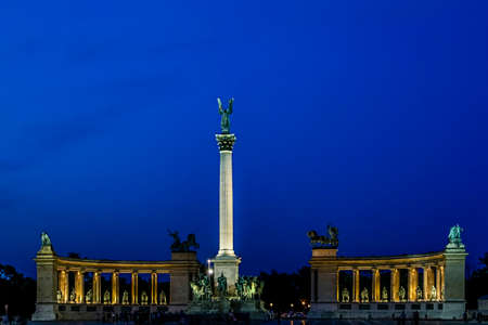 Evening View. Heroes' Square monument in Budapest, Hungary