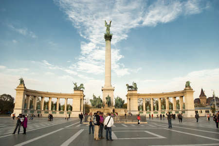 Sight in a cloudy day of the Heroes Square in Budapest, the capital city of Hungary. The Heroes Square is one of the major squares in Budapest