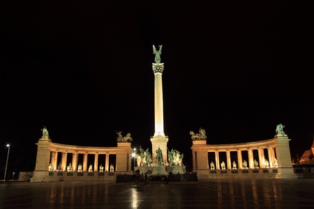 Heroes square by night in Budapest, Hungary