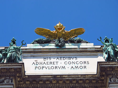 Hofburg palace top in center of Vienna, Austria (inscription To this building adheres unified love of peoples)