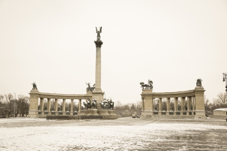 heroes square , in Budapest Winter shot