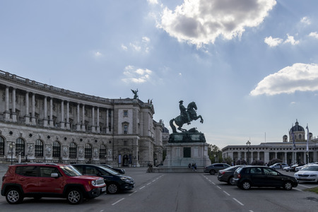 VIENNA, AUSTRIA - OCTOBER 31 2016: Equestrian statue of Prince Eugene of Savoy (Prinz Eugen von Savoyen) in front of Hofburg palace on October 31,2016