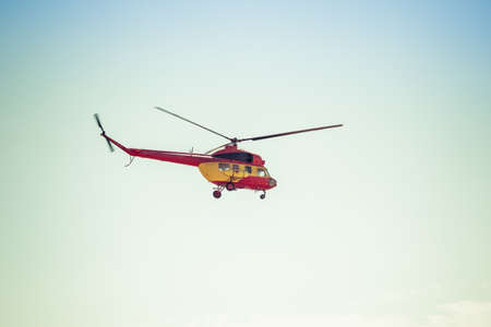 Air transport in the sky. Useful aircraft helicopters. Aircraft emergency help.