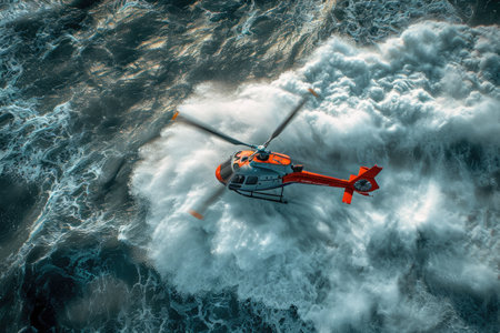 Helicopter in the stormy sea.