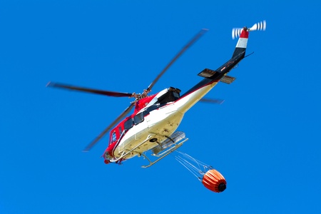 emergency helicopter extinguishes flames of a raging bush fire