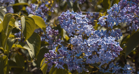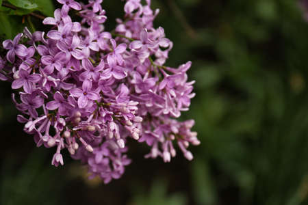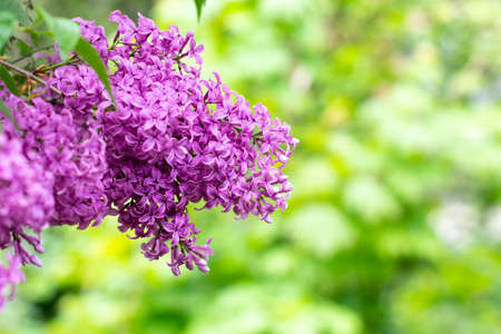 branch with lilac spring flowers, bright blooms of spring lilacs bush, soft focus, close-up