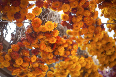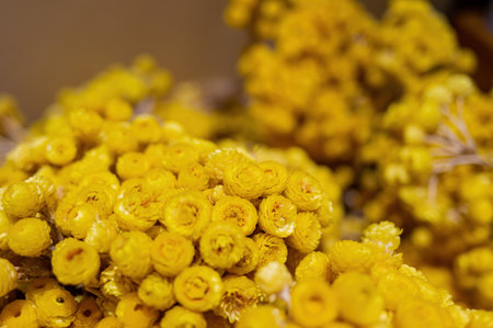Close up shot of many yellow dry flower at Taipei, Taiwan
