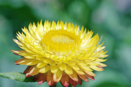 Close up of a yellow strawflower. (Helichrysum bracteatum)