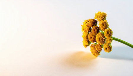 helenium stem tilted on white with warm soft key ample copy area minimal composition