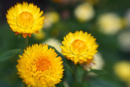 Beautiful Straw flower or Everlasting flower blossom in the spring colorful garden / Xerochrysum bracteatum - Helichrysum bracteatum