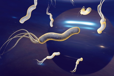 3D illustration of Helicobacter pylori, bacterium which causes gastric and duodenal ulcer