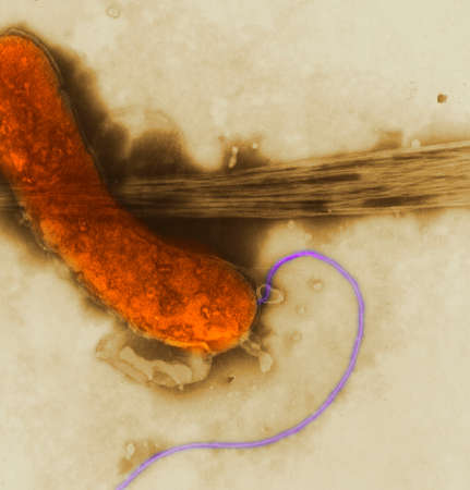 Escherichia coli bacteria, 3D illustration. E. coli is a Gram-negative rod-shaped motile bacterium covered with flagella