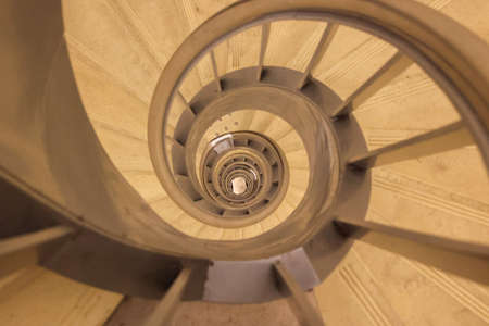 Spiral stone staircase in Basilica of st. Stephen in Budapest, Hungary, view from above on the perspective