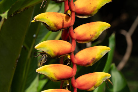 Heliconia (Heliconiaceae, lobster-claws, toucan beak, wild plantains, false bird of paradise) with natural background