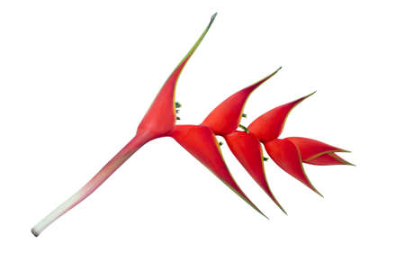 A beautiful red Heliconia, a tropical flower, isolated on a white background