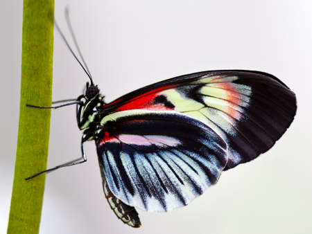 Piano Key butterfly (Heliconius melpomene) with closed wings on a green stem