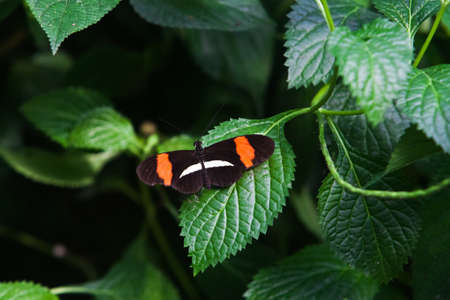 Postman butterfly is resting on the leaves. Heliconius melpomene