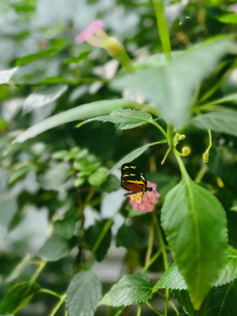 Butterfly on a leaf in a tropical garden