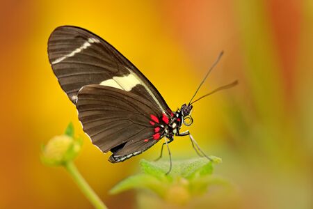 Heliconius cydno galanthus butterfly, in nature habitat. Nice insect from Costa Rica in the green forest. Butterfly sitting on the leave of Panama.