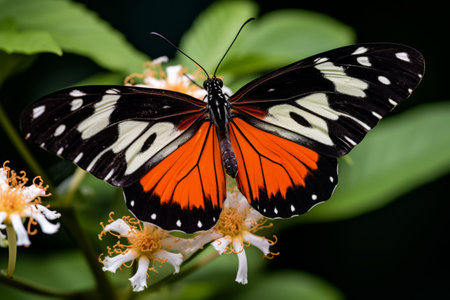 Vibrant Encounter: A Striking Orange, White, and Black Butterfly Resting on a Delicate Flower -- AR