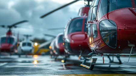 Cuttingedge eVTOLs line the helipad poised for action in the event of a medical evacuation emergency