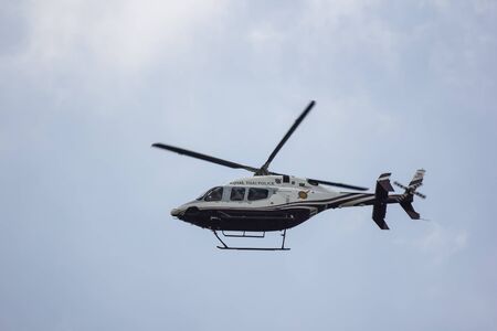 Chiangmai, Thailand - August 26 2019: 3204 Bell 429 Global Ranger of Royal Thai Police Wing. Fly Over Chiangmai Sky.