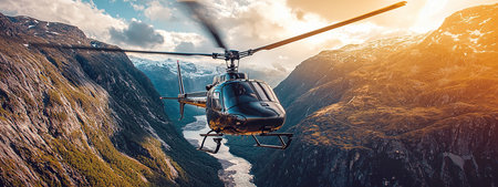 Flying helicopter among the mountains