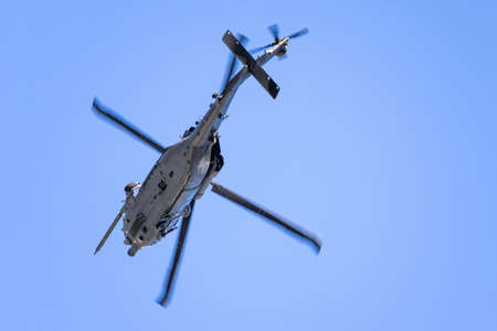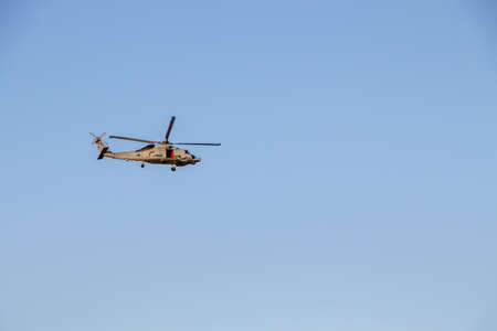 Military navy helicopter flying in the sky