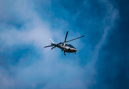 Passenger Helicopter flying in blue sky
