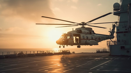 rescue helicopter approaches the ship, generated ai image