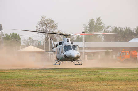 Yasothon, THAILAND - March 15, 2021: Bell 412EPI No. 2613 form Thai Police Aviation Division, Take off during mission Deputy Minister of Agriculture and Cooperatives inspection program.
