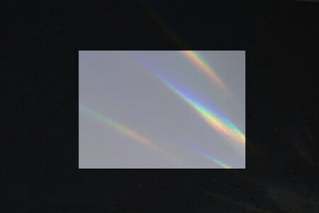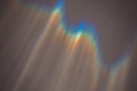 .Rainbow holographic shadow mock up, iridescent prismatic wallpaper. Abstract prism reflection, rays leaking through lens effect. Crystal light reflections for overlay mockup on light background.