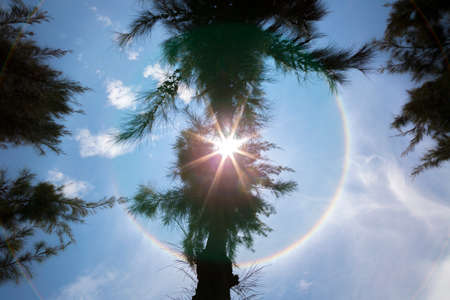 Amazing Natural phenomenon Sun halo or the sun with circular rainbow.